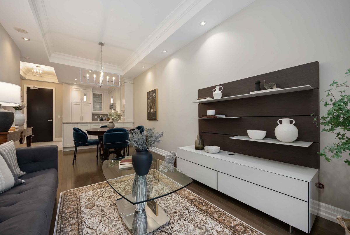 Luxury Living at Kilgour Estates. Step into elegance at this exclusive Lawrence Park residence, where timeless design meets modern convenience. Bathed in Southern light, this sophisticated 2 bedroom, 2.5 bathroom suite showcases an open concept layout with 9ft coffered ceilings, hardwood, and high-end porcelain flooring, and custom built in closet systems. The gourmet kitchen boasts premium stainless steel and built in appliances, refined finishes, abundant storage, and a seamless open flow designed for both culinary artistry and entertaining. Both bedrooms offer spa-inspired ensuites, including a primary retreat with a large walk-in closet. Your private terrace overlooks the serene garden, complete with a BBQ gas line, perfect for entertaining or quiet relaxation. Nestled in one of Torontos most prestigious enclaves where privacy, and grandeur harmonize. Residents enjoy a refined, resort-style lifestyle with an exceptional collection of amenities designed to elevate everyday living from a state of the art fitness centre and serene swimming pool to beautifully landscaped grounds, walking trails, and outdoor barbecue areas perfect for entertaining. A fully equipped business centre with high-speed internet and private meeting rooms supports seamless work from home living, while pet-friendly features ensure four legged companions are just as well cared for. Every detail is thoughtfully curated to offer comfort, convenience, and a true sense of community. Surrounded by exclusive private and preparatory schools. High-end boutiques and dining along Bayview, York Mills Road, Bayview Village, York Mills Plaza. Premier parks and gardens, Edwards Gardens & the Toronto Botanical Garden, Sunnybrook Park, Windfields Park, Wilket Creek trails, with seamless access to major highways and Downtown Toronto all combine to create a upscale and serene lifestyle.